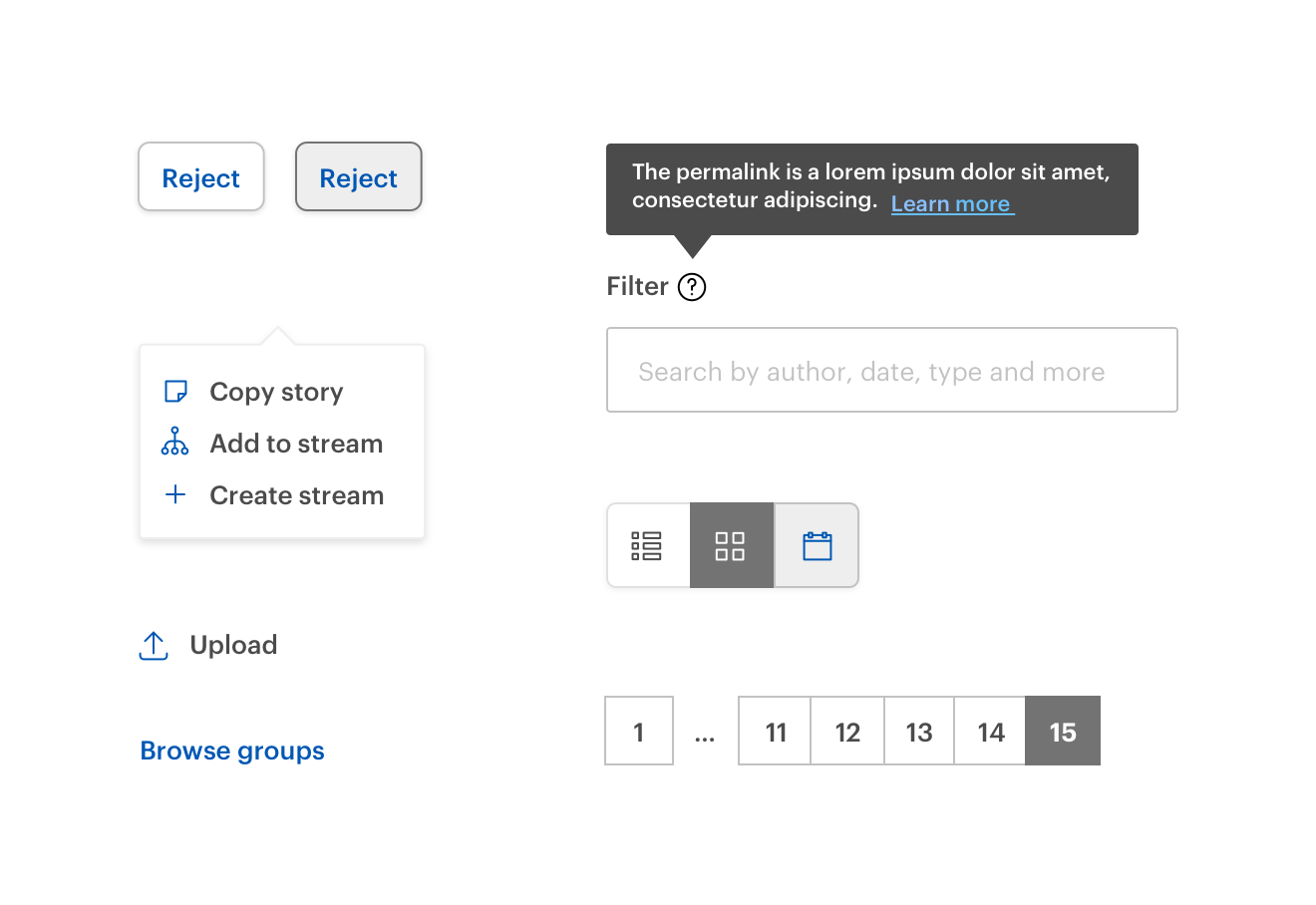While the Resonance palette contains many saturated colors, use of the 500 values should be limited. Implementing a restrained palette of neutral grays with pops of color for important actions creates a more effective hierarchy than a page covered in a rainbow of colors.
